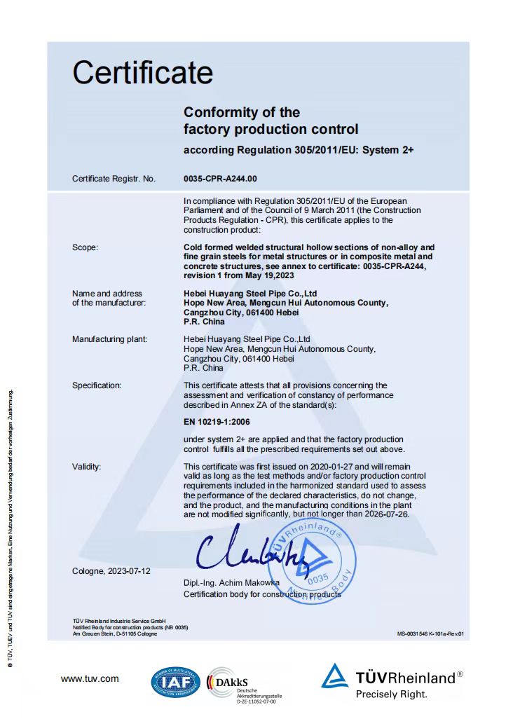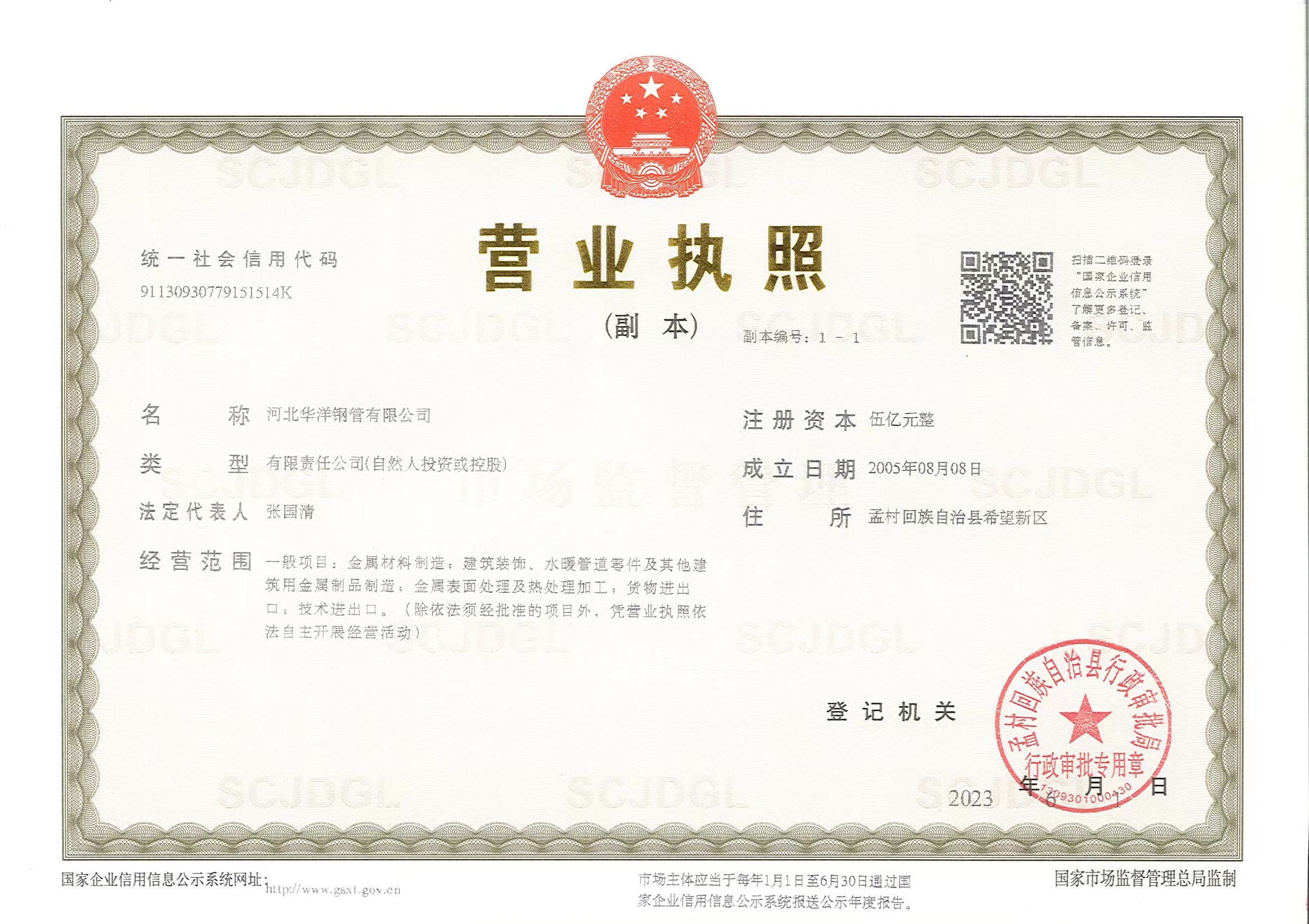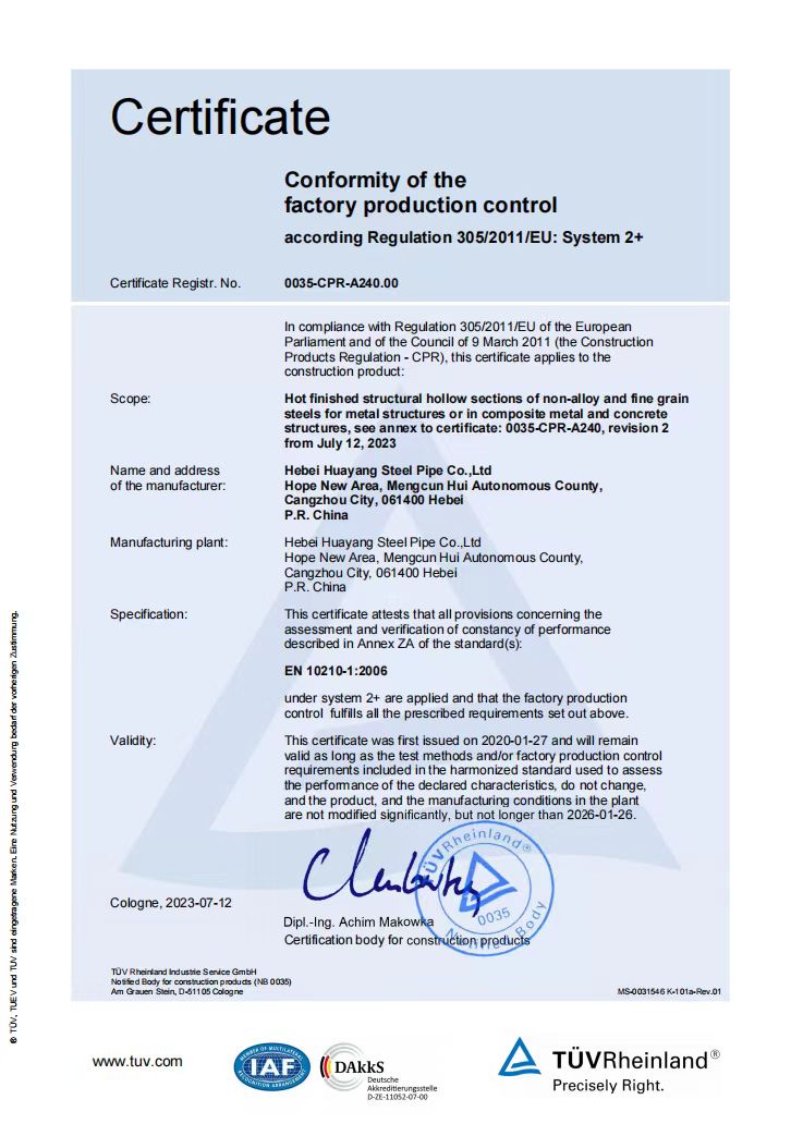 河北華洋鋼管有限公司公司創(chuàng)建于2005年,注冊(cè)資金5億元,公司占地面積1000余畝,固定資產(chǎn)12億元,年銷(xiāo)售收入近100億元,現(xiàn)有員工600余人。“華洋牌"高頻直焊鋼管被評(píng)為“河北省名牌產(chǎn)品”,年生產(chǎn)能力可達(dá)260萬(wàn)噸,2024年河北華洋鋼管有限公司榮獲河北省百?gòu)?qiáng)民營(yíng)企業(yè)(69位),河北省百?gòu)?qiáng)制造業(yè)(57位)榮譽(yù)稱(chēng)號(hào)。