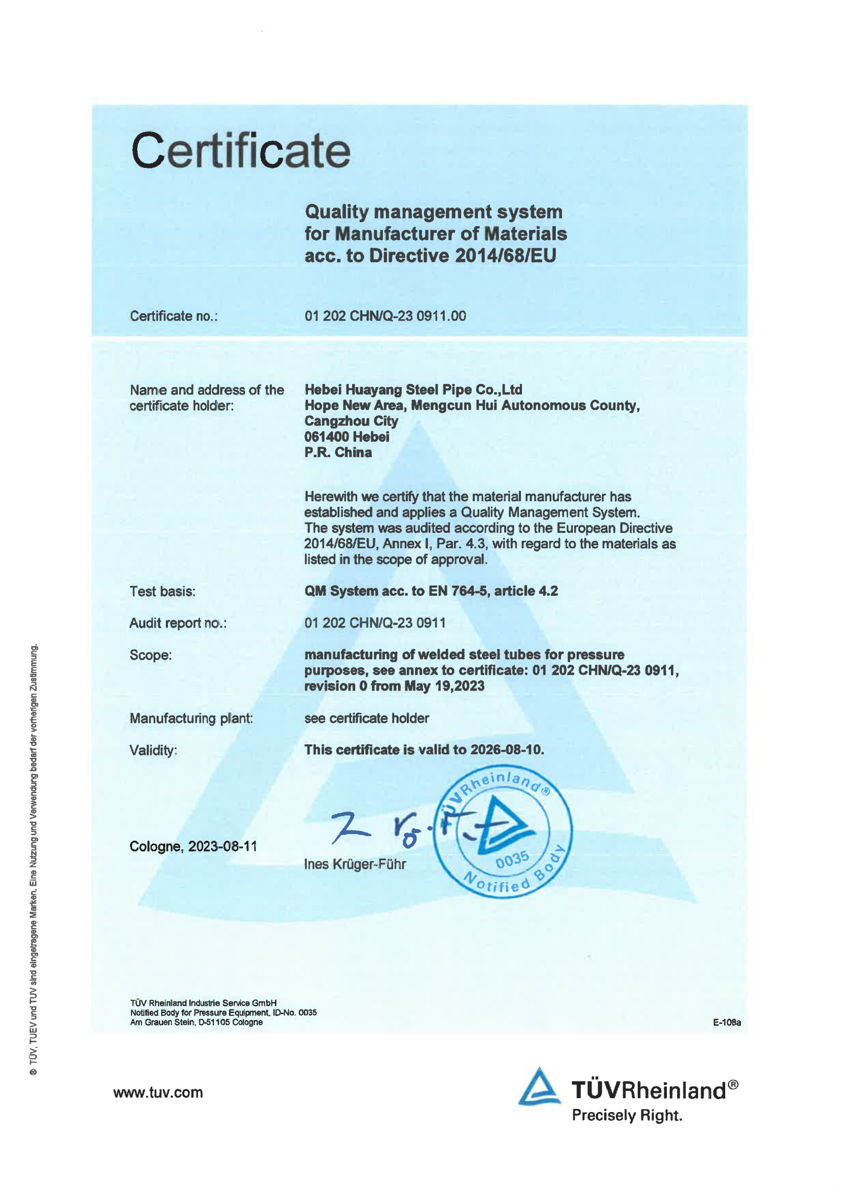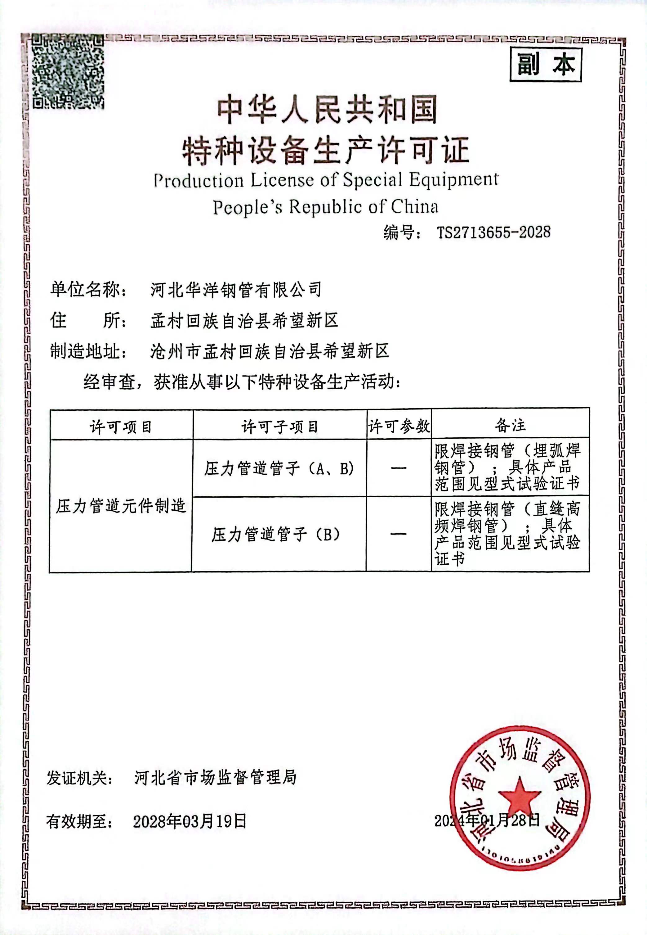 公司現(xiàn)有17條新型的自動(dòng)化鋼管生產(chǎn)線(xiàn),包括Φ73-660.4高頻直縫焊鋼管生產(chǎn)線(xiàn)14條、Φ406.4-Φ1422.4直縫雙面埋弧焊鋼管生產(chǎn)線(xiàn)3條,并配備有一條防腐生產(chǎn)線(xiàn),可進(jìn)行3PE、2PE、FBE、2PP、3PP防腐處理,同時(shí)還可提供鋼管深加工服務(wù)。公司擁有先進(jìn)的理化實(shí)驗(yàn)室,可承擔(dān)鋼管的各項(xiàng)物理及化學(xué)檢測(cè)與試驗(yàn)。公司先后取得了ISO9001質(zhì)量管理體系認(rèn)證、ISO14001環(huán)境管理體系認(rèn)證、ISO45001職業(yè)健康安全管理體系認(rèn)證、特種設(shè)備制造許可證、API5L和API2B認(rèn)證證書(shū)、歐盟CE認(rèn)證、俄羅斯GOST認(rèn)證、法國(guó)船級(jí)社(BV)工廠(chǎng)認(rèn)證、科威特石油入網(wǎng)認(rèn)證、中海油入網(wǎng)證、安全生產(chǎn)標(biāo)準(zhǔn)化二級(jí)企業(yè)等標(biāo)準(zhǔn)質(zhì)量體系認(rèn)證。